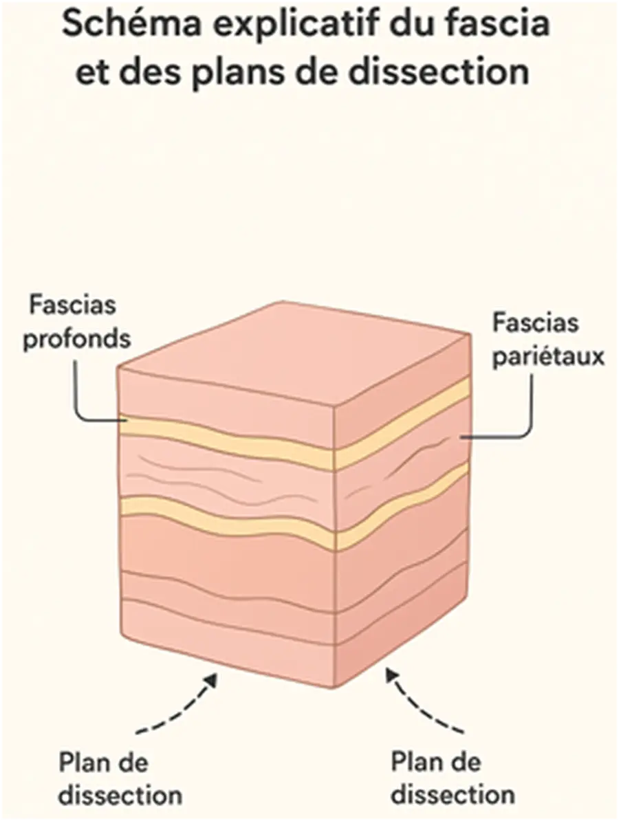 Le CO₂, sous une pression contrôlée, s’insinue dans les espaces de moindre résistance. Ce geste permet en séparant fascia et tissus conjonctifs : d’améliorer la visibilité des repères anatomiques, de disposer de repères fixes pour orienter la progression de la dissection et de déterminer dans quelle direction le gaz peut progresser, ou au contraire où il s’arrête.